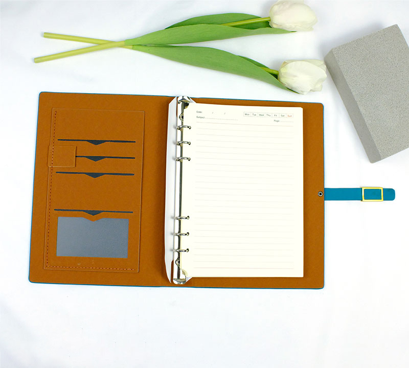 – Có ngăn đựng card visit, thẻ visa, còng 6 lỗ inox 1.5cm