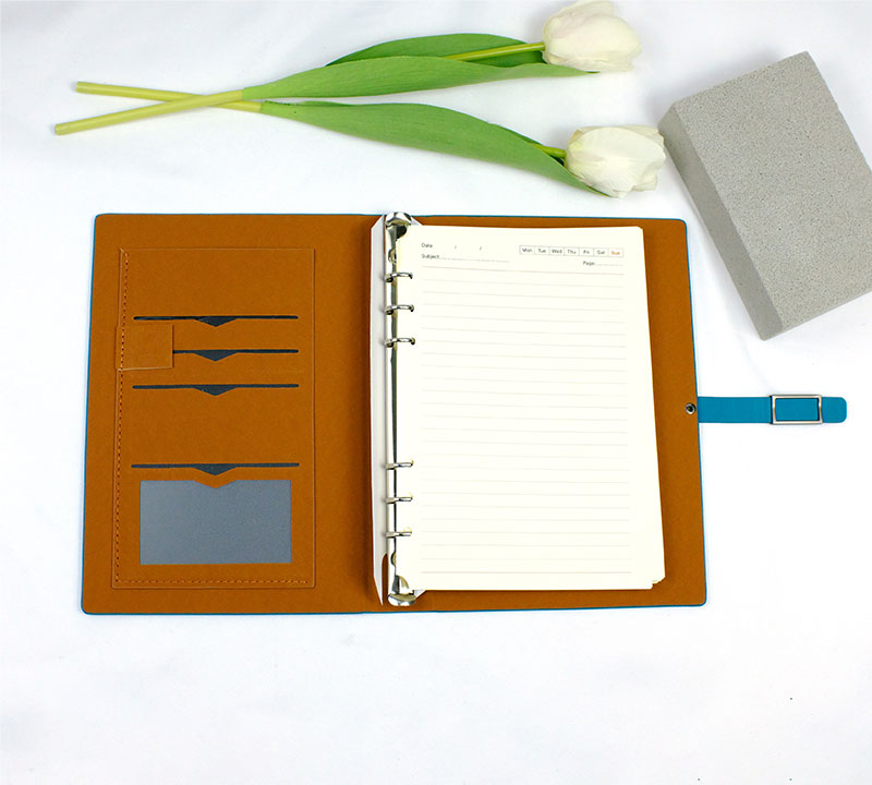 – Có ngăn đựng card visit, thẻ visa, còng 6 lỗ inox 1.5cm