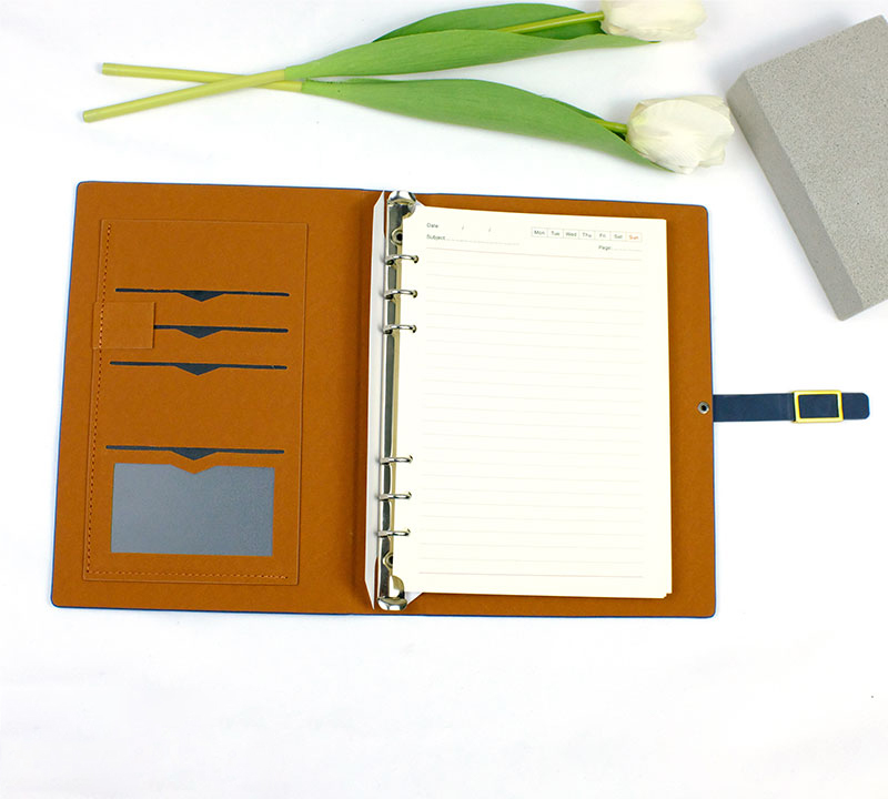 – Có ngăn đựng card visit, thẻ visa, còng 6 lỗ inox 1.5cm