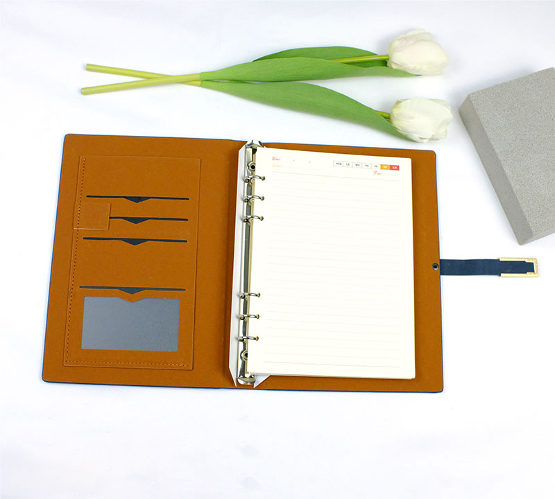 – Có ngăn đựng card visit, thẻ visa, còng 6 lỗ inox 1.5cm
