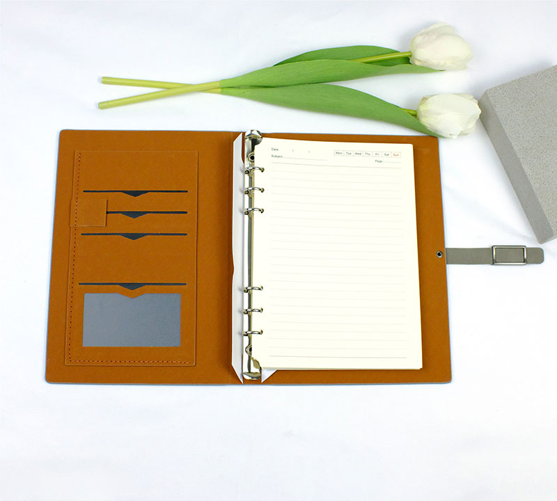 – Có ngăn đựng card visit, thẻ visa, còng 6 lỗ inox 1.5cm
