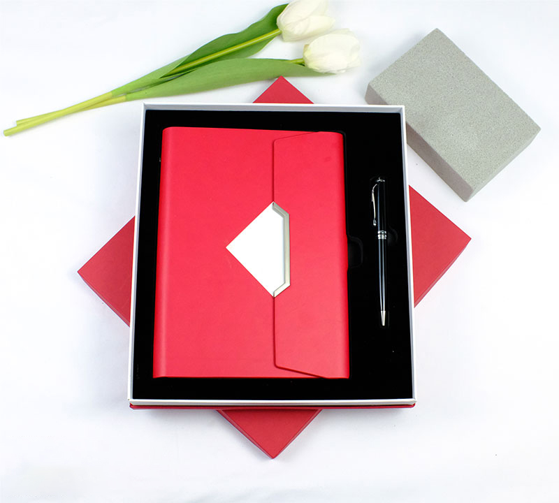 – Kiểu bìa: Nắp gập nam châm, viền lăn sơn cạnh, có nẹp khóa kim loại trang trí.
