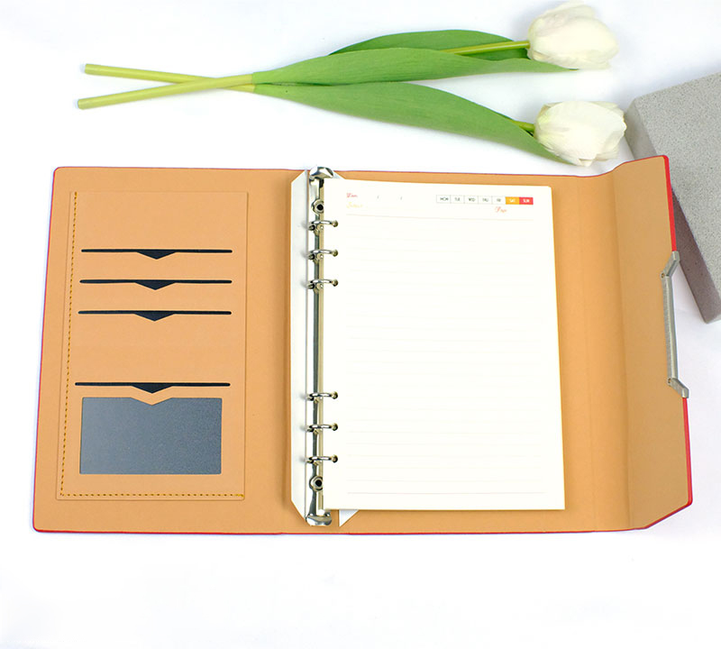– Có ngăn đựng card visit, thẻ visa, còng 6 lỗ inox 1.5cm