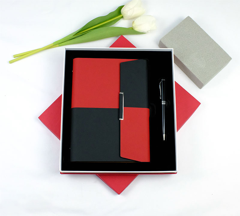 – Kiểu bìa: Nắp gập nam châm, viền lăn sơn cạnh, có nẹp khóa kim loại trang trí.