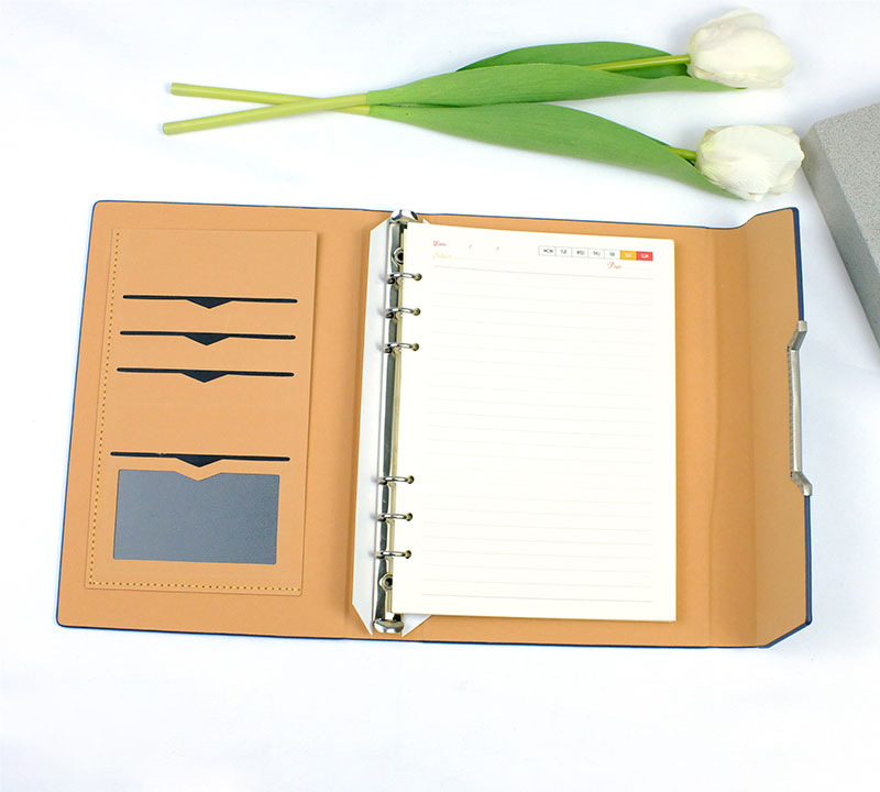 – Có ngăn đựng card visit, thẻ visa, còng 6 lỗ inox 1.5cm