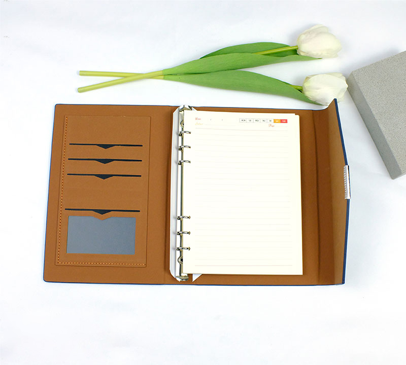 – Có ngăn đựng card visit, thẻ visa, còng 6 lỗ inox 1.5cm