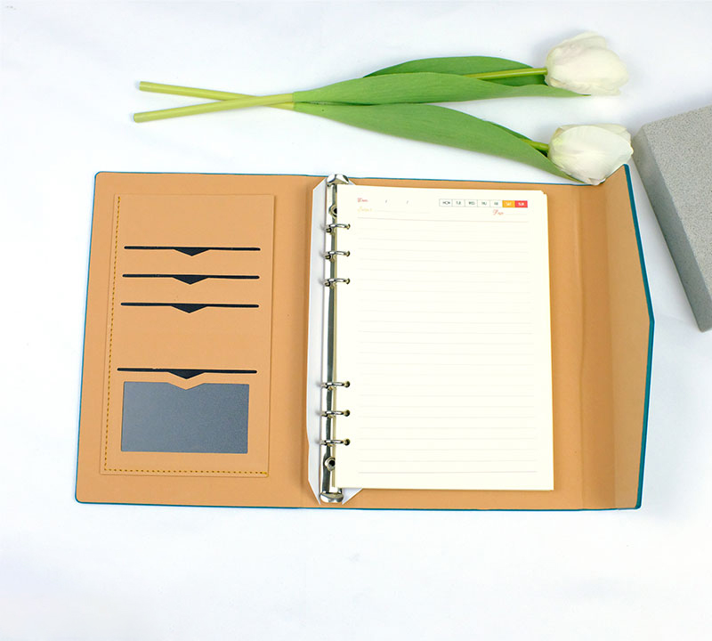 – Có ngăn đựng card visit, thẻ visa, còng 6 lỗ inox 1.5cm